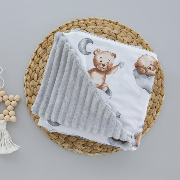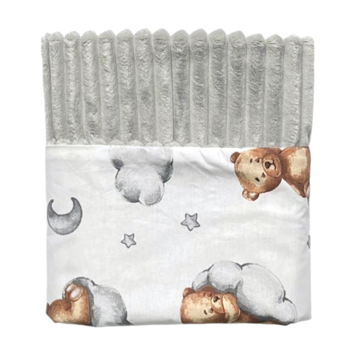 Плед плюш Ведмедик Коричневий на хмаринці/ Сірий плюш 100/80