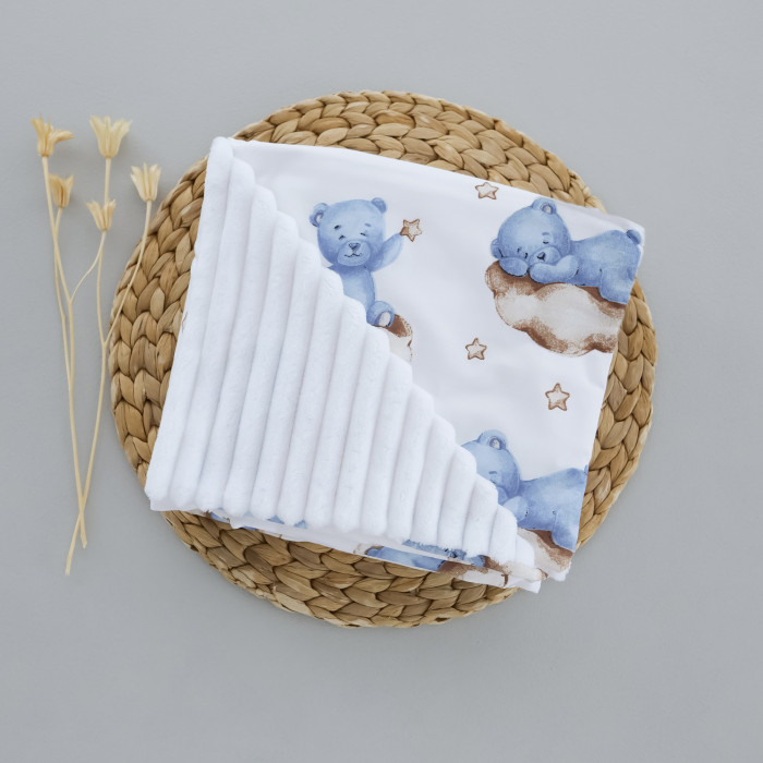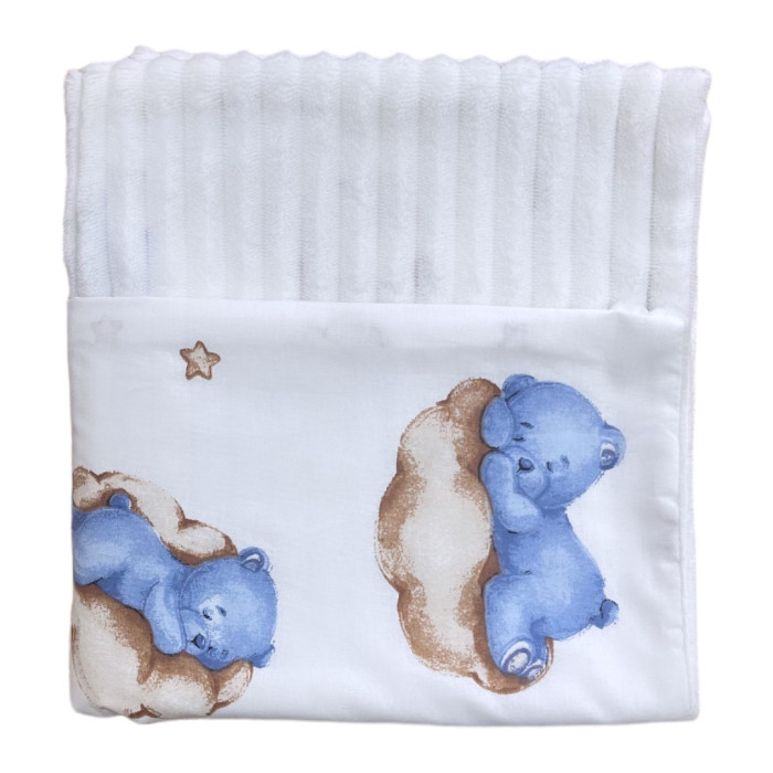 Плед плюш Ведмедик на хмаринці Блакитний/ Білий плюш 100/80