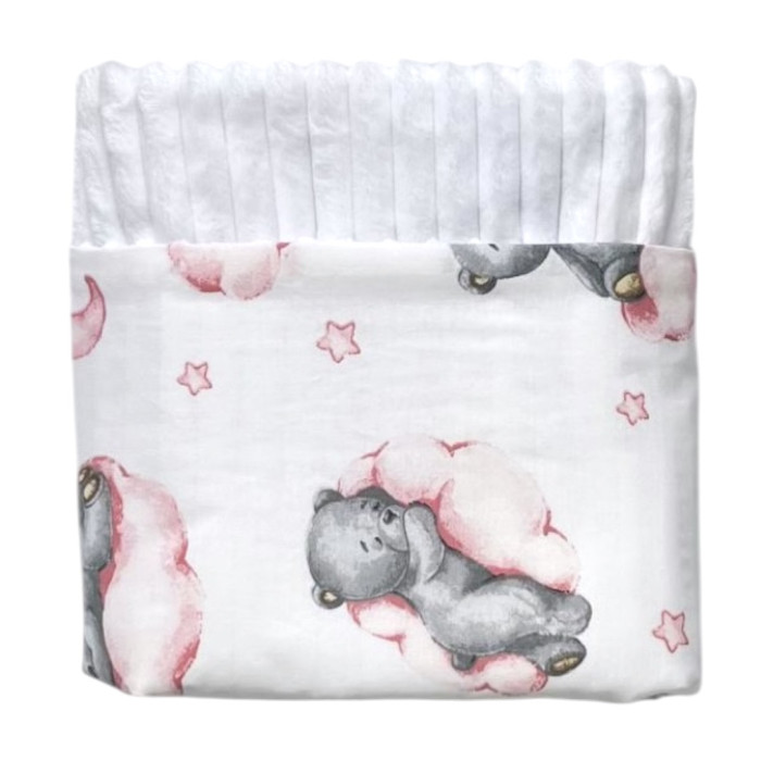 Плед плюш Ведмедик на хмаринці Рожевий/ Білий плюш 100/80