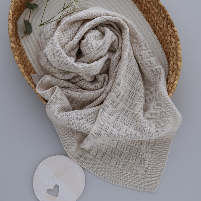 Вʼязаний плед демісезонний Бежевий шахматка 95/70