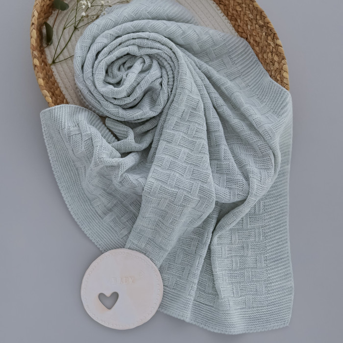 Вʼязаний плед демісезонний Сірий шахматка 95/70