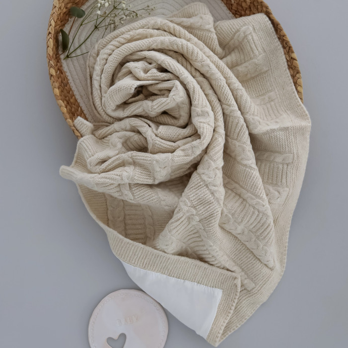 Вʼязаний плед демісезонний з підкладкою Бежевий косичка 90/80