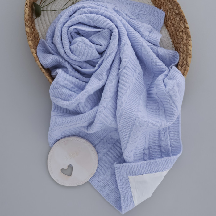 Вʼязаний плед демісезонний з підкладкою Ліловий косичка 90/80