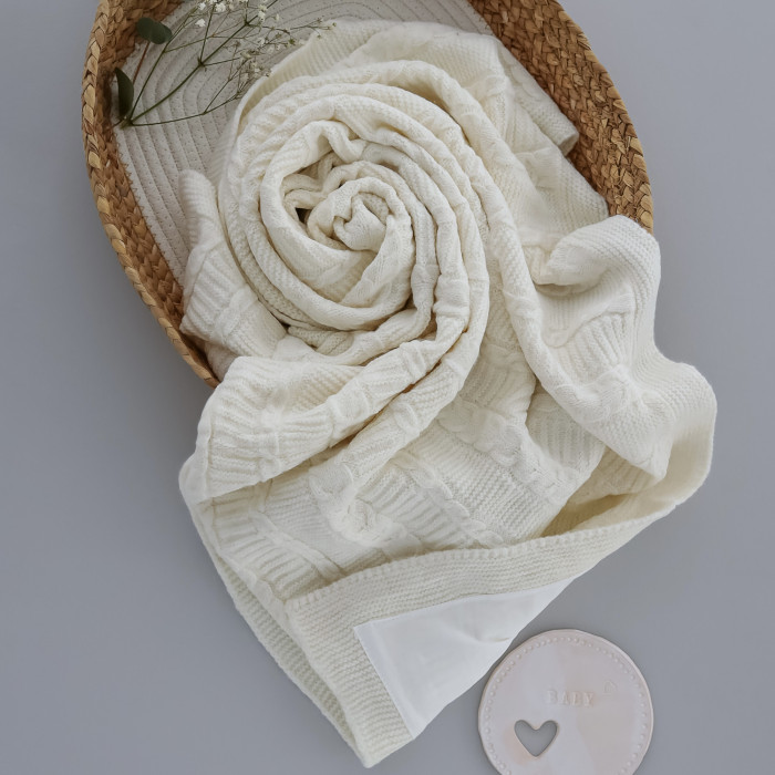 Вʼязаний плед демісезонний з підкладкою Молочний косичка 90/80