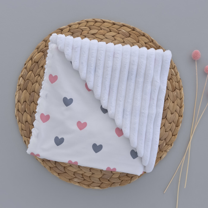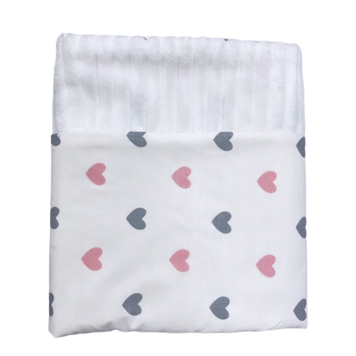 Плед без утеплення, Сердечка Рожевий/ Білий плюш 100/80