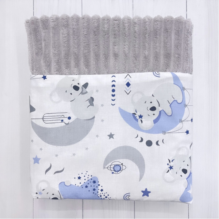 Плед плюш, без утеплення Коала Блакитний/ Сірий плюш 100/80