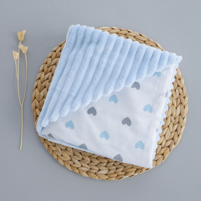 Плед плюш, без утеплення Сердечка Блакитний/ Блакитний плюш 100/80