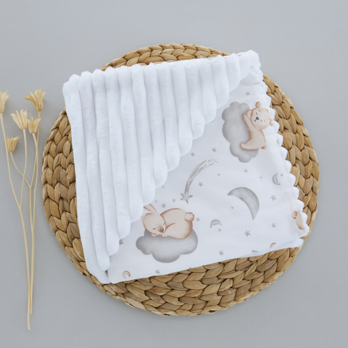 Плед плюш, без утеплення Звірята на хмаринці /Білий плюш 100/80