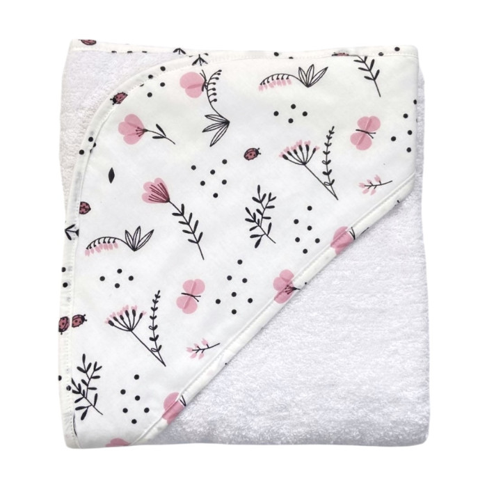 Дитячий рушник з кутиком махровий (100% котон) Квіточки Рожевий 90/80