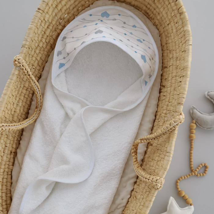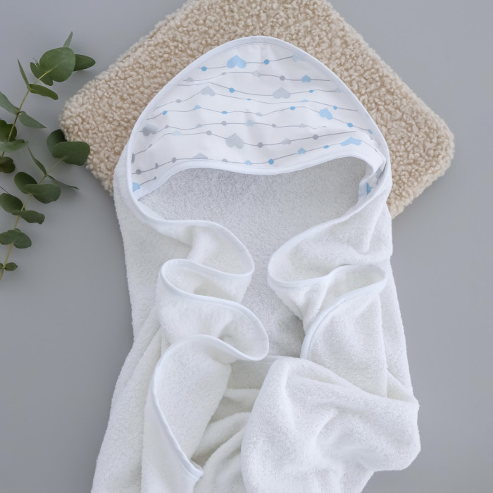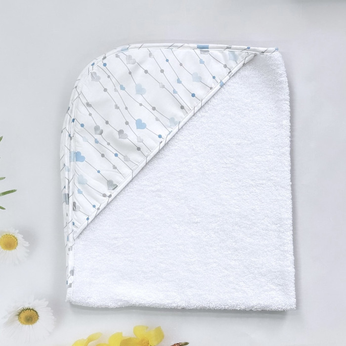 Дитячий рушник з кутиком махровий (100% котон) Сердечка Блакитний -Срібний (гліттер) 90/80