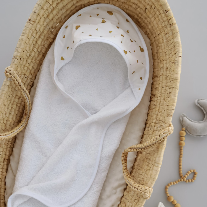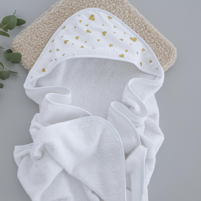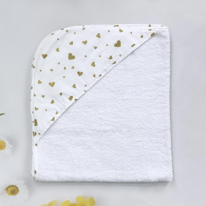 Дитячий рушник з кутиком махровий (100% котон) Сердечка Золотий (гліттер) 90/80