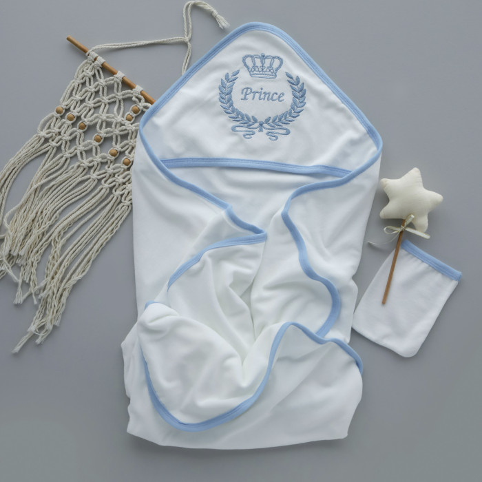 Дитячий рушник з кутиком махровий Принц Корона Блакитний з облямівкою 90/85