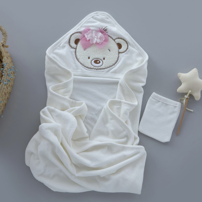 Дитячий рушник з кутиком махровий Ведмедик дівчинка Молочний 90/85