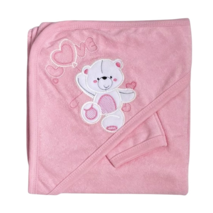 Дитячий рушник з кутиком махровий Ведмедик Love Рожевий 90/85