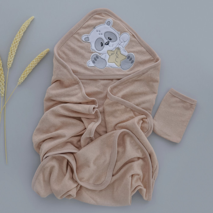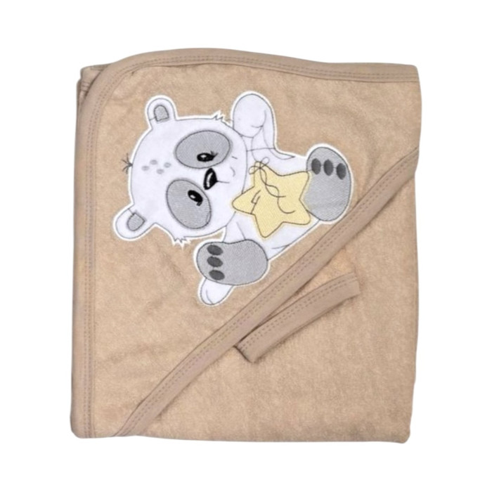 Дитячий рушник з кутиком махровий Ведмедик Зірка Бежевий 90/85