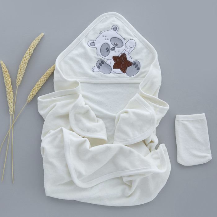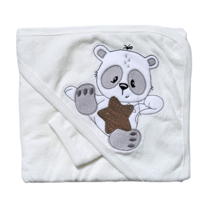 Дитячий рушник з кутиком махровий Ведмедик Зірка Молочний 90/85