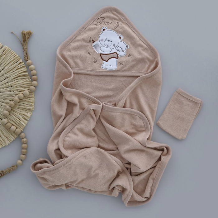 Дитячий рушник з кутиком махровий Ведмедики Бежевий 90/85