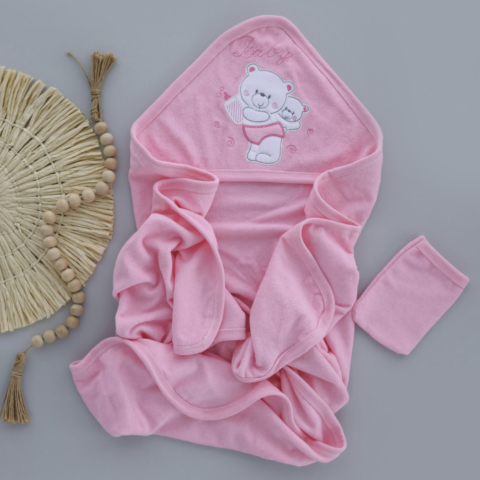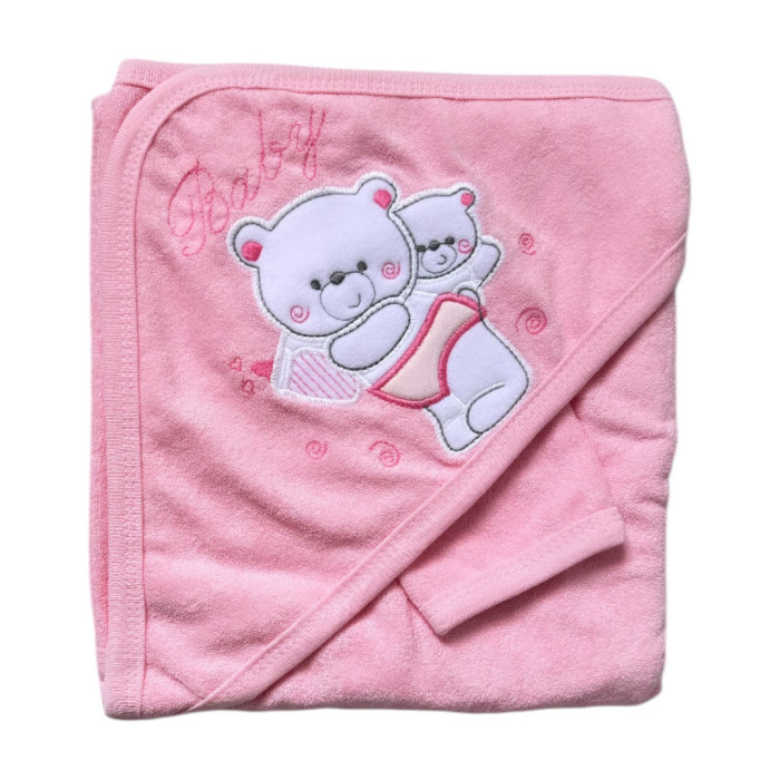 Дитячий рушник з кутиком махровий Ведмедики Рожевий 90/85