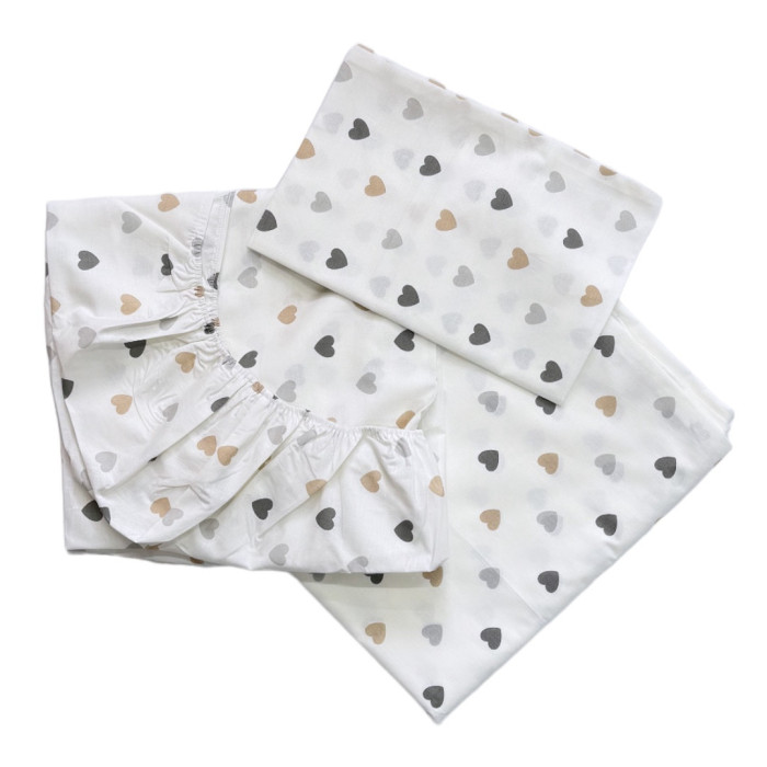 Комплект постільної білизна в ліжко 120/60 Сердечка Бежевий (підковдра 140*110, наволочка 40*60, простирадло 120*60)