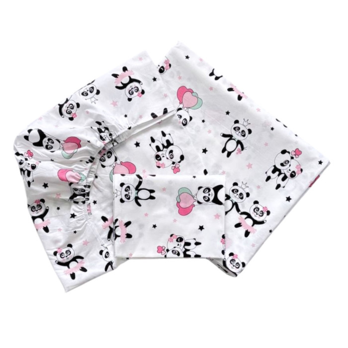 Комплект постільної білизни Панди Рожевий (підковдра 140*110, наволочка 40*60, простинка 120*60)