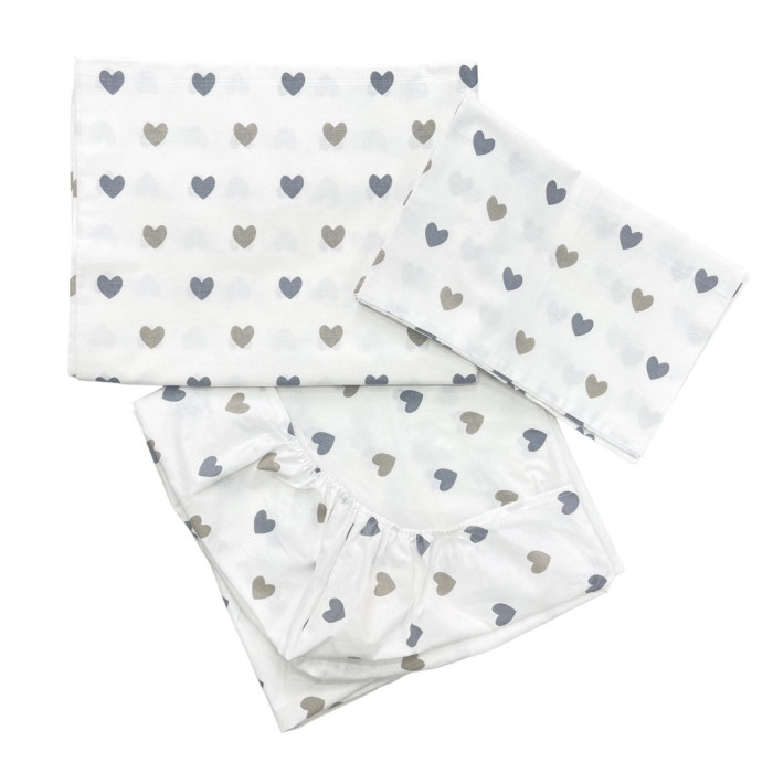 Комплект постільної білизни Сердечка Сірий (підковдра 140*110, наволочка 40*60, простинка 120*60)
