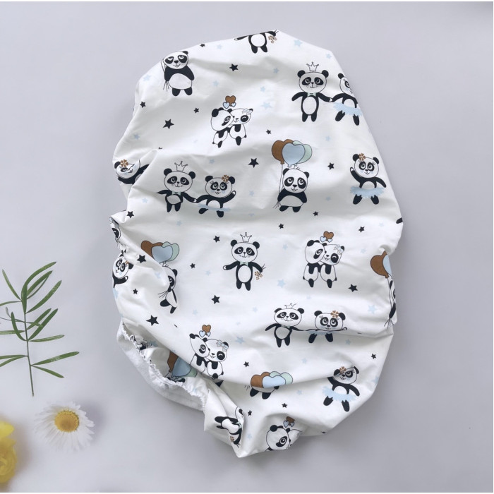 Непромокаюче простирадло на гумці в коляску Панди Блакитний 80/40