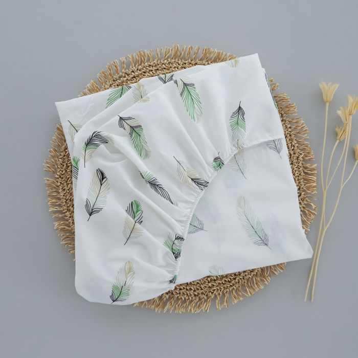 Простинка на гумці в ліжко Пір’їнки Зелений 120/60