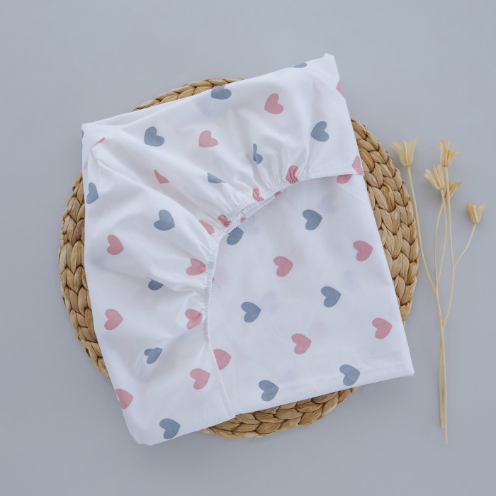 Простинка на гумці в ліжко Сердечка Рожевий 120/60