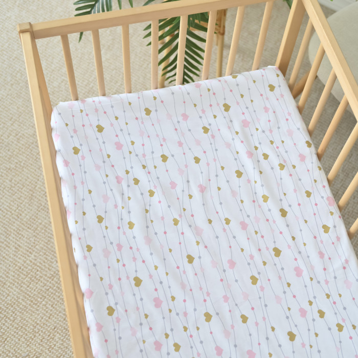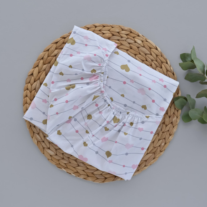 Простинка на гумці в ліжко Сердечка Рожевий -Золото (гліттер) 120/60