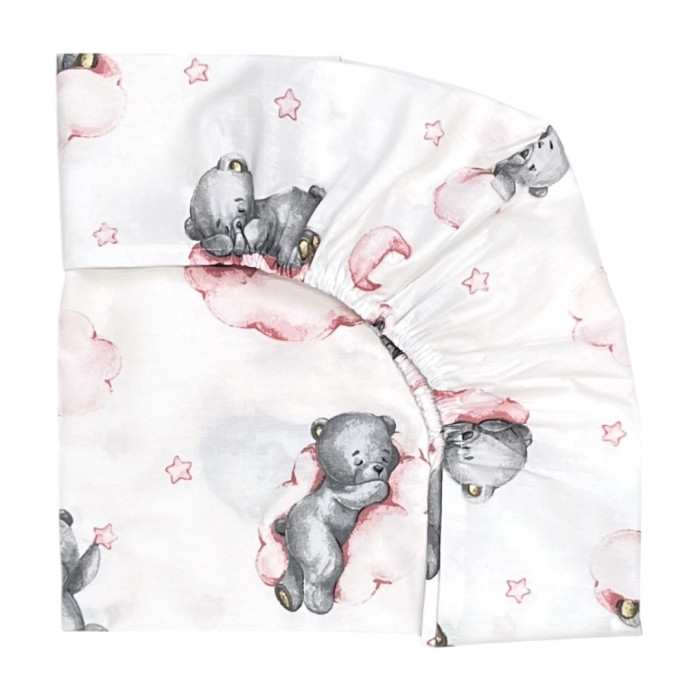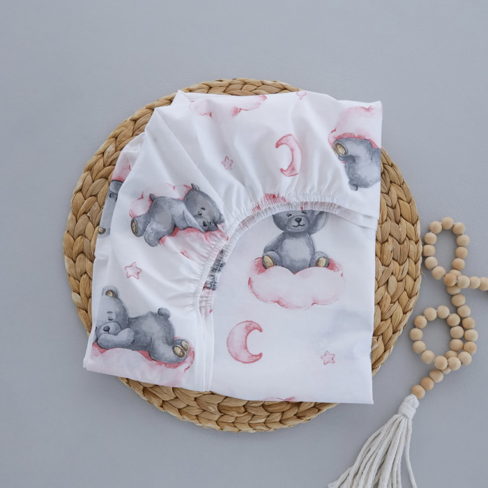 Простинка в ліжко 120/60 на гумці Ведмедик на хмаринці Рожевий